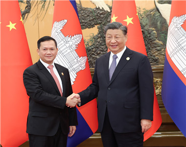 Xi Jinping Meets with Prime Minister of Cambodia Hun ManetChina is ready to uphold the principle of "planning together, building together, and benefiting together", enhance synergy between the Belt and Road Initiative and Cambodia's Pentagonal Strategy, flesh?out?the China-Cambodia "diamond hexagon" cooperation framework at a faster pace, build well?the "Industrial Development Corridor" and the "Fish and Rice Corridor", and push for the implementation of more projects that benefit the people.