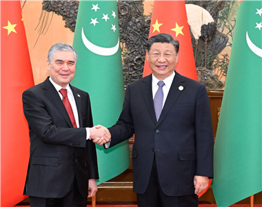 Xi Jinping Meets with National Leader of the Turkmen People?and Chairman of the Halk Maslahaty of Turkmenistan Gurbanguly BerdimuhamedovChina is ready?to enhance?the synergy?between the Belt and Road Initiative and Turkmenistan’s strategy?of?reviving?the Great Silk Road, making the ancient Silk Road a “road to happiness” in the new era