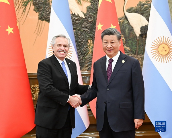 Fernandez said that a friend in need is a friend indeed. Over the past few years, when the country was faced with difficulties, be it COVID-19 pandemic, severe droughts and natural disasters, or financial and economic woes, China always extended a precious helping hand to the Argentine people. Argentina has been deeply touched by and will never forget this. Fernandez called China a true friend of Argentina, and noted that President Xi Jinping's important initiatives such as jointly building the Belt and Road and building a global community with a shared future for mankind have shown the way forward for the world, created important opportunities for developing countries, and played an irreplaceable role in promoting world peace, fairness, and sustainable development. Argentina fully agrees with and actively supports these initiatives. Argentina is firmly committed to the one-China principle and hopes to deepen cooperation with China in economy, trade, infrastructure and other areas, and promote further development of the comprehensive strategic partnership between Argentina and China. Argentina will also actively promote the growth of LAC-China relations, and work with China to uphold multilateralism and strengthen communication and collaboration within the frameworks of the G20 and BRICS cooperation mechanism.
