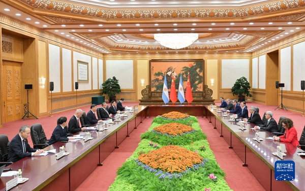 Xi Jinping pointed out that over the past 50 years since the establishment of diplomatic relations between China and Argentina, the two sides have always respected each other, treated each other as equals, and achieved mutual benefit and win-win results. In recent years, under the joint guidance of the two presidents, China-Argentina relations have stepped up to new levels. Both China and Argentina are important developing countries, shouldering the historical mission of promoting national development and revitalization, meeting people's aspirations for a better life, and upholding international fairness and justice. China is ready to work with Argentina to enhance the synergy of strategies, promote sustained and stable development of bilateral relations, and set a fine example of solidarity and cooperation between Global South countries. China supports Argentina's efforts in maintaining economic and financial stability, and is ready to share development opportunities and promote high-quality Belt and Road cooperation with Argentina, and deepen practical bilateral cooperation in agriculture, infrastructure and other areas. China would like to import more high-quality Argentine products and encourage more Chinese enterprises to invest in Argentina.