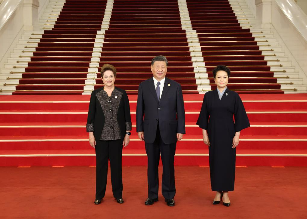 Chinese President Xi Jinping and his wife Peng Liyuan welcome Dilma Rousseff, president of the New Development Bank, before a banquet for distinguished guests attending the Third Belt and Road Forum for International Cooperation, in Beijing, capital of China, Oct. 17, 2023. Xi Jinping and Peng Liyuan on Tuesday hosted a banquet at the Great Hall of the People in Beijing to welcome guests who are in China to attend the Third Belt and Road Forum for International Cooperation. (Xinhua/Pang Xinglei)