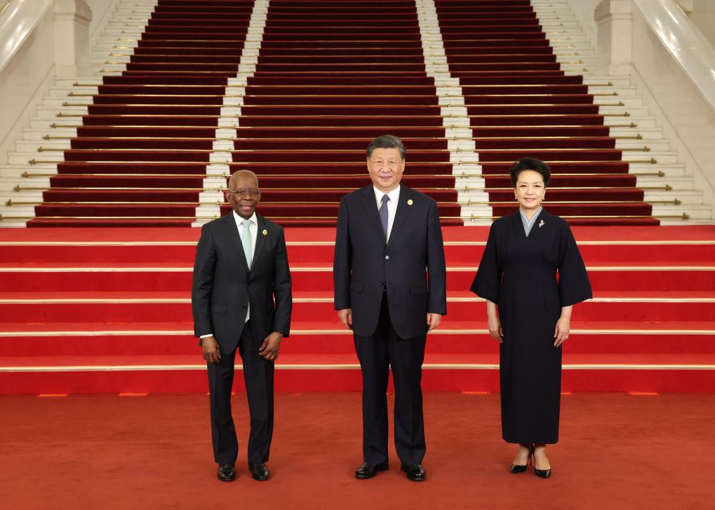 Chinese President Xi Jinping and his wife Peng Liyuan welcome Prime Minister of Mozambique Adriano Maleiane before a banquet for distinguished guests attending the Third Belt and Road Forum for International Cooperation, in Beijing, capital of China, Oct. 17, 2023. Xi Jinping and Peng Liyuan on Tuesday hosted a banquet at the Great Hall of the People in Beijing to welcome guests who are in China to attend the Third Belt and Road Forum for International Cooperation. (Xinhua/Pang Xinglei)