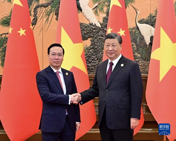 V? V?n Th??ng congratulated China on successfully hosting the third BRF. He noted that the participation of representatives from more than 150 countries reflects the international community’s affirmation and support of the BRI. Over the past decade, the BRI has become an open, inclusive, and high-quality international cooperation platform, contributing significantly to the development of relevant nations and friendship among the people. President Xi’s speech at the opening of the forum was visionary, encompassing both strategic planning and specific measures, showcasing the role of China as a major country and the role of the Communist Party of China (CPC) as a major party. It will have a significant impact in guiding future international cooperation and global development. Vietnam admires the significant achievements of the CPC in theoretical?and practical?innovation. President Xi’s governance philosophy has been inspiring to the party and government of Vietnam. Vietnam views China’s development as an opportunity and supports socialist China in developing itself and achieving its goal of building a strong China as scheduled. The Vietnamese side believes that China will make a greater contribution to world peace and development. Vietnam firmly adheres to the one-China principle, and is ready to maintain high-level strategic communication with China, upgrade the positioning of Vietnam-China relations, and continuously enrich the substance of the bilateral comprehensive strategic cooperative partnership in the new era.